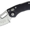 Microtech (169-12) “Stitch” Automatic Folder, 3.42″ M390 Stonewashed Fully Serrated Spear Point Blade, Black Anodized 6061-T6 Aluminum Handle, Push Button Lock