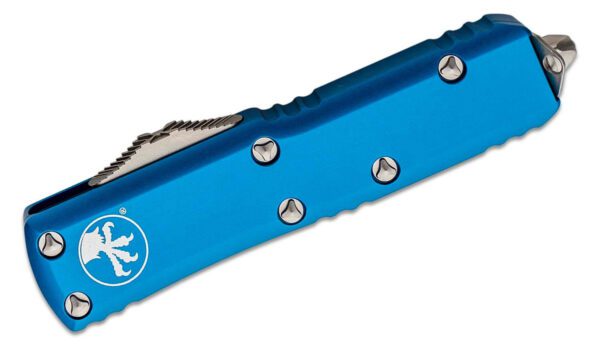 Microtech (231-10BL) “UTX-85″ Dual Action OTF, 3.125” M390 Stonewashed Drop Point Blade, Blue Anodized 6061-T6 Aluminum Handle with Glass Breaker