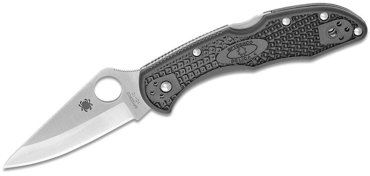 Spyderco (C11PBK) “Delica 4″ Manual Folder, 2.875” VG-10 Satin Drop Point Blade, Black FRN Handle, Lock Back