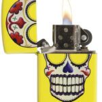 This Neon yellow windproof lighter is color imaged with a day of the dead skull. Comes packaged in a gift box. For optimal performance, fill with Zippo lighter fuel.