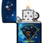 Introducing a new line of designs featuring Santa Cruz Skateboards’ iconic artwork. Inspired by the vivid pop-art graphics that are splashed across their skateboard decks, this windproof lighter features the Santa Cruz starry-eyed panther, which is color imaged on a Navy Matte lighter. Comes packaged in a gift box. For optimal performance fill with Zippo lighter fuel.